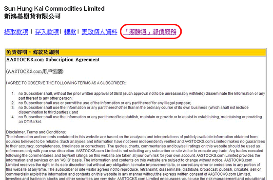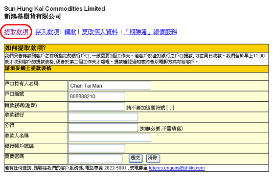 如需提取款項,按「提取款項」,輸入資料及買賣密碼然後按「遞交」。