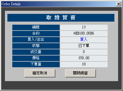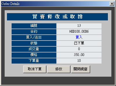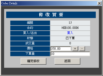 修改價格及/或下單量,按下「確定修改」以修改此指令。