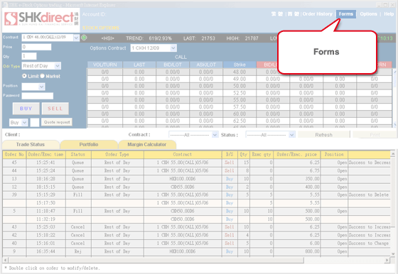 Click on "Forms" to withdraw/deposit/transfer your fund, or change your personal information.