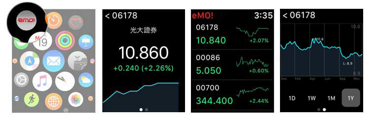 透過eMO! Apple Watch版,您便可輕鬆地查看監察表內的股票。如您已在iPhone版開啟即時報價,您亦可同時地在您的Apple Watch取得即時報價(2)。